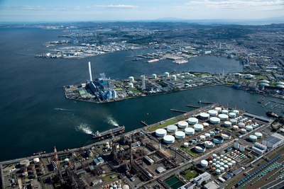 根岸石油化学コンビナートと電源開発磯子火力発電所(横浜港)