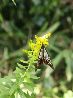 セイタカアワダチソウと飛ぶアサギマダラ