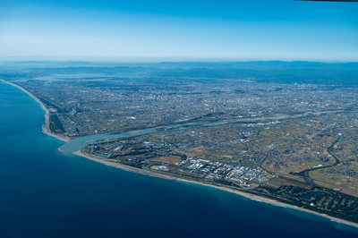 遠州灘(天竜川河口)より磐田市南部地区と浜松市街地