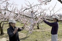 モモの受粉作業