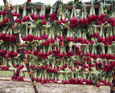 赤カブ干し。松原水泳場