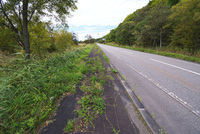 国道336号と歩道に生えた雑草