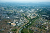 釜無川、笛吹川合流地点より甲府盆地、甲府市街地方面