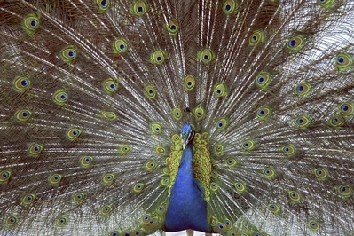 羽を広げたクジャク