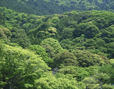 森林浴の森百選・新緑の両子山。両子寺にて
