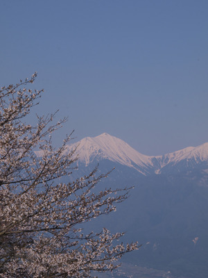 長峰山の桜と北アルプス常念岳