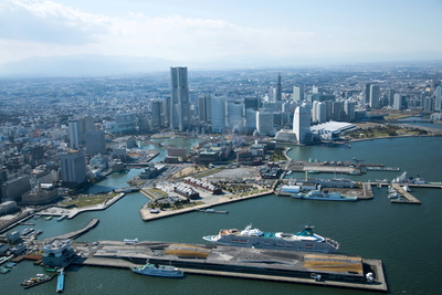 横浜大さん橋(横浜港)の客船とみなとみらい地区,横浜市街地