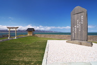 追分記念碑と寿都湾