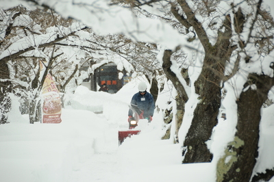 小型ロータリー除雪機を使っての除雪