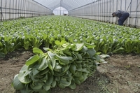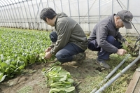 小松菜を収穫する農家