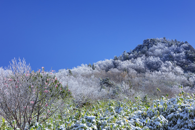笠岳の霧氷と青空