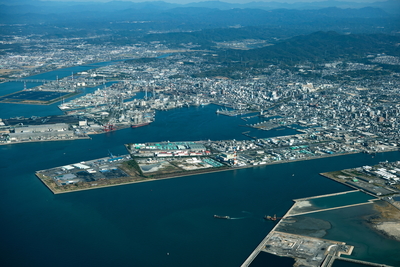 宇部港と工業地区より宇部市街地