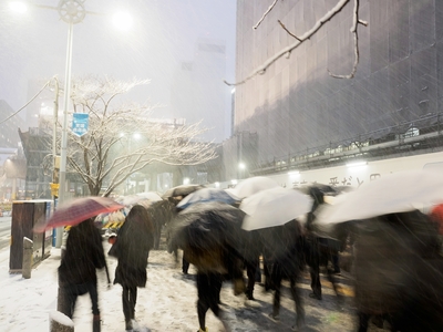 雪で早期帰宅する人々