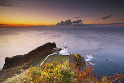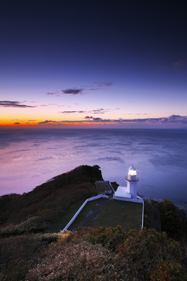 霧多布岬と湯沸岬灯台の朝と太平洋