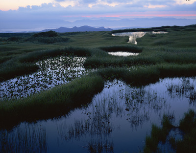 弥陀ヶ原地塘群と朝日。月山 国指定天然記念物