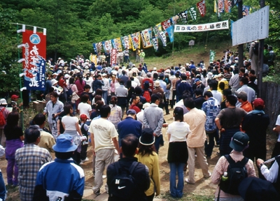 大漁旗を掲げての植林活動