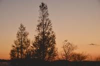 夕暮れ染まる手賀沼ほとりの木々