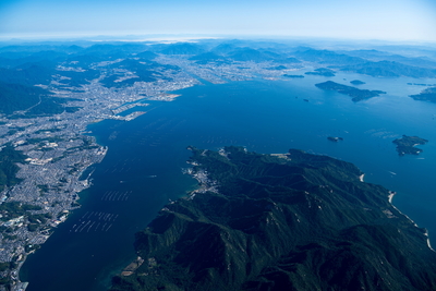 厳島(宮島)全景より広島市街地(岩船岳,厳島神社)日本三景