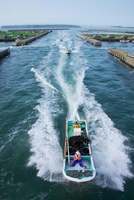 朝の昆布漁船の出漁