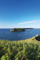小島と昆布漁船(昆布漁)