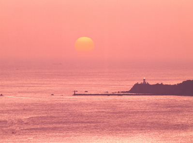 朝日と安乗崎灯台