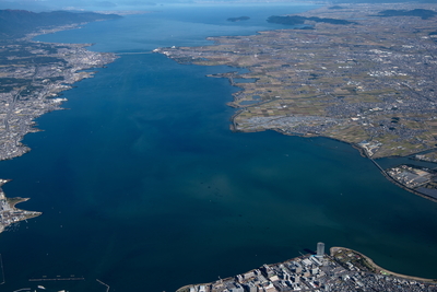 大津市(石寺山、瀬田周辺)より琵琶湖全景(高度3,500m)日本最大の面積