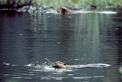 ビーバー 木の葉を食べる