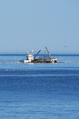 朝の定置網漁船