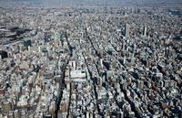 雪景色の浅草と隅田川より東京スカイツリー