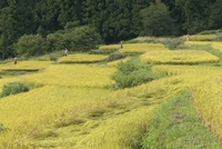 丸山千枚田・収穫の頃の棚田を見守る案山子 棚田百選