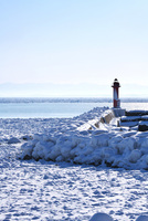 オホーツク海の流氷と赤灯台