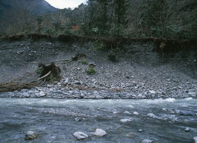 安倍川上流・豪雨で流された川岸