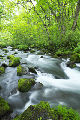奥入瀬渓流の新緑 阿修羅の流れ
