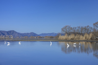 シラサギと琵琶湖と青空