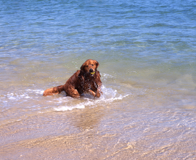 ゴールデンレトリバー・ビーチで遊ぶ