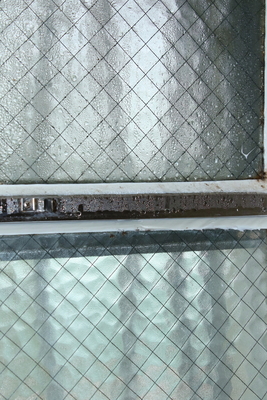 結露した窓ガラス、外気で冷えた窓ガラス