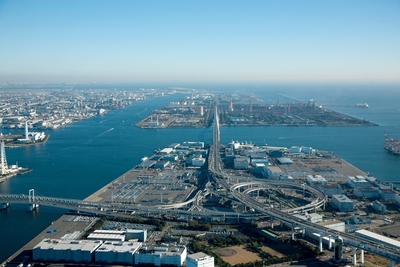 首都高速湾岸線と扇島(京浜工業地区)