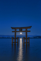 満月の白鬚神社の湖中鳥居