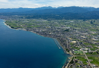 滑川市より魚津市の海岸線と街並み