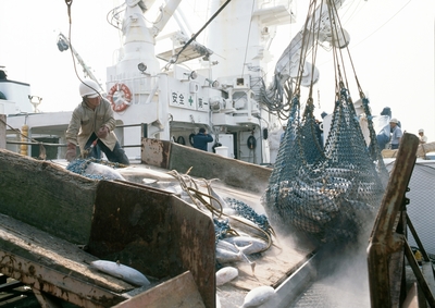 焼津漁港 冷凍庫へ入れる