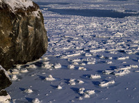 能取岬海岸の流氷と朝光