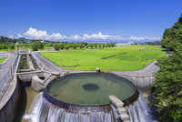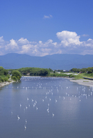 姉川のシラサギと積乱雲