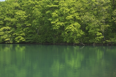 笹流ダム前庭広場の新緑のモミジ