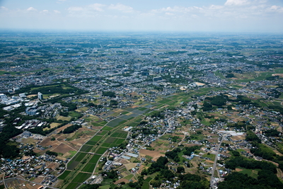 つくば駅と筑波研究学園都市周辺より関東平野