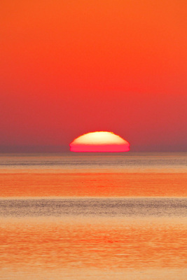 四角い太陽 日の出とオホーツク海