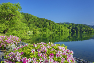 ツツジ咲く余呉湖