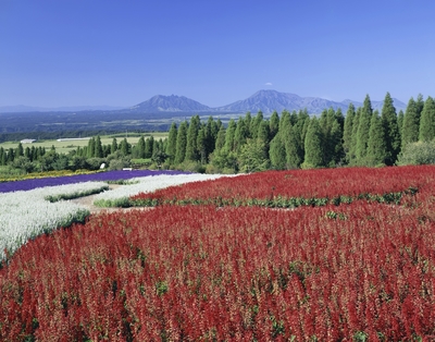 サルビア咲くくじゅう花公園からくじゅう連山