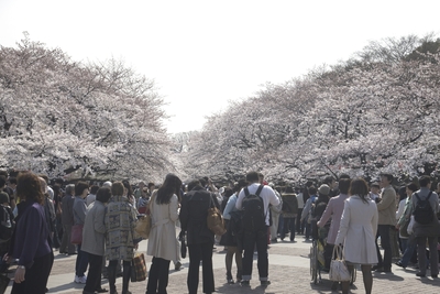 桜満開の新宿御苑と花見客