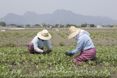 嬬恋のキャベツ作り・平野で苗取り