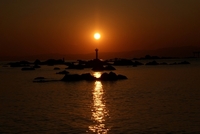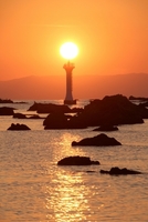 灯台を照らす夕日
